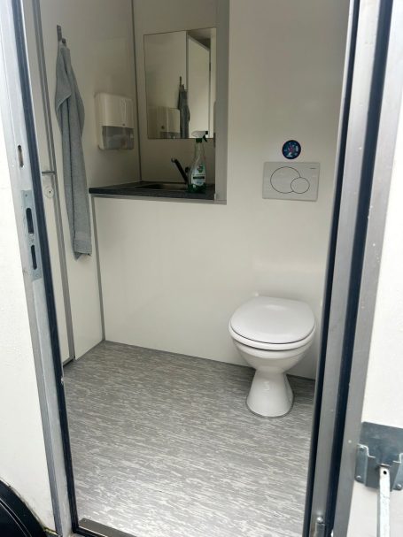 Der Duschwagen benötigt einen Frischwasseranschluss, Abwasseranschluss von minium 1,1/4 Zoll ( 4,2 cm ) und einem 230 Volt Anschluss